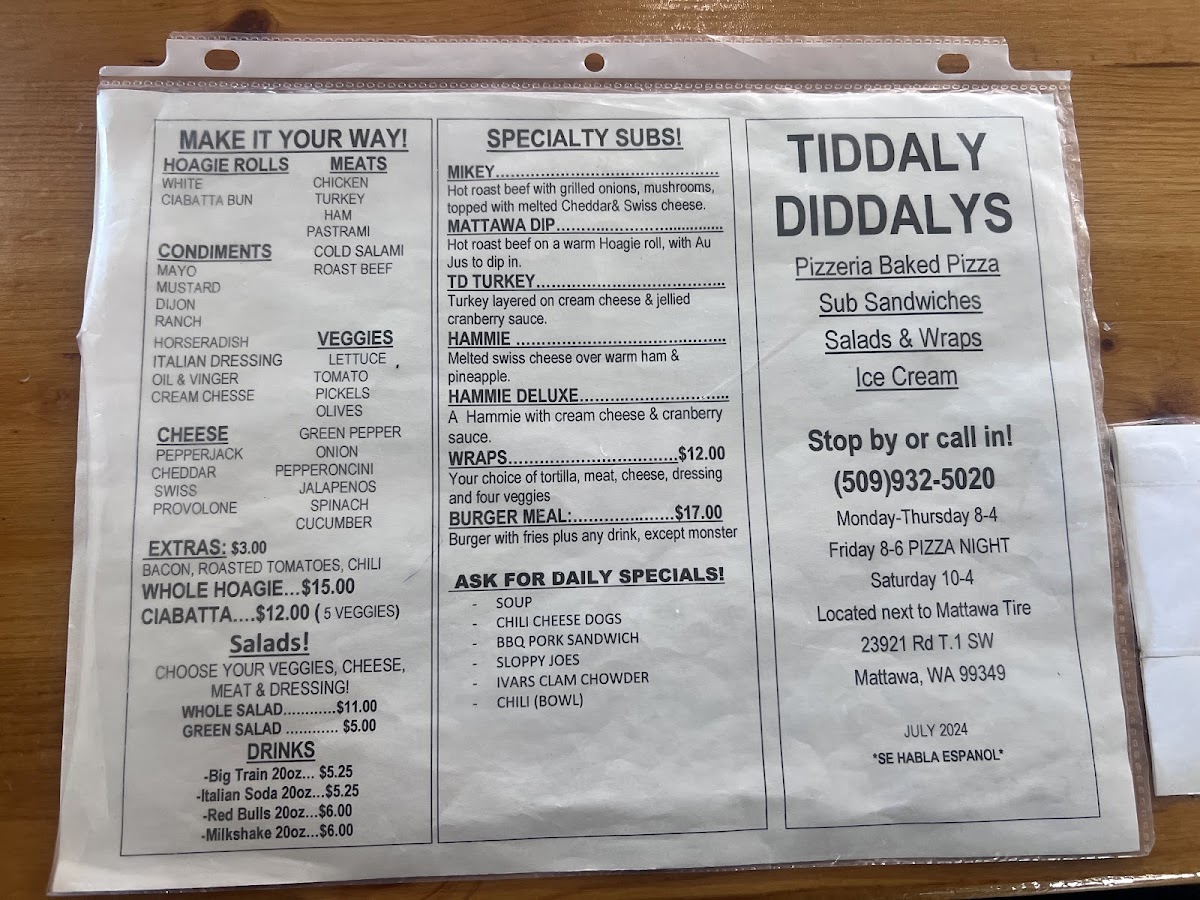 Welcome to Tiddaly Diddalys, a gem tucked away in Mattawa, WA, where delicious food meets a warm, inviting atmosphere. This restaurant serves as a perfect pit stop before heading to the scenic Gorge Amphitheater. The menu boasts a delightful variety of options. Guests rave about the expertly crafted pizzas, featuring generous portions and fresh ingredients, ensuring each bite is a savory experience. If pizza isn’t on your agenda, try the turkey hoagie with cream cheese and cranberry sauce—an unexpected flavor combination that has wowed first-time visitors.